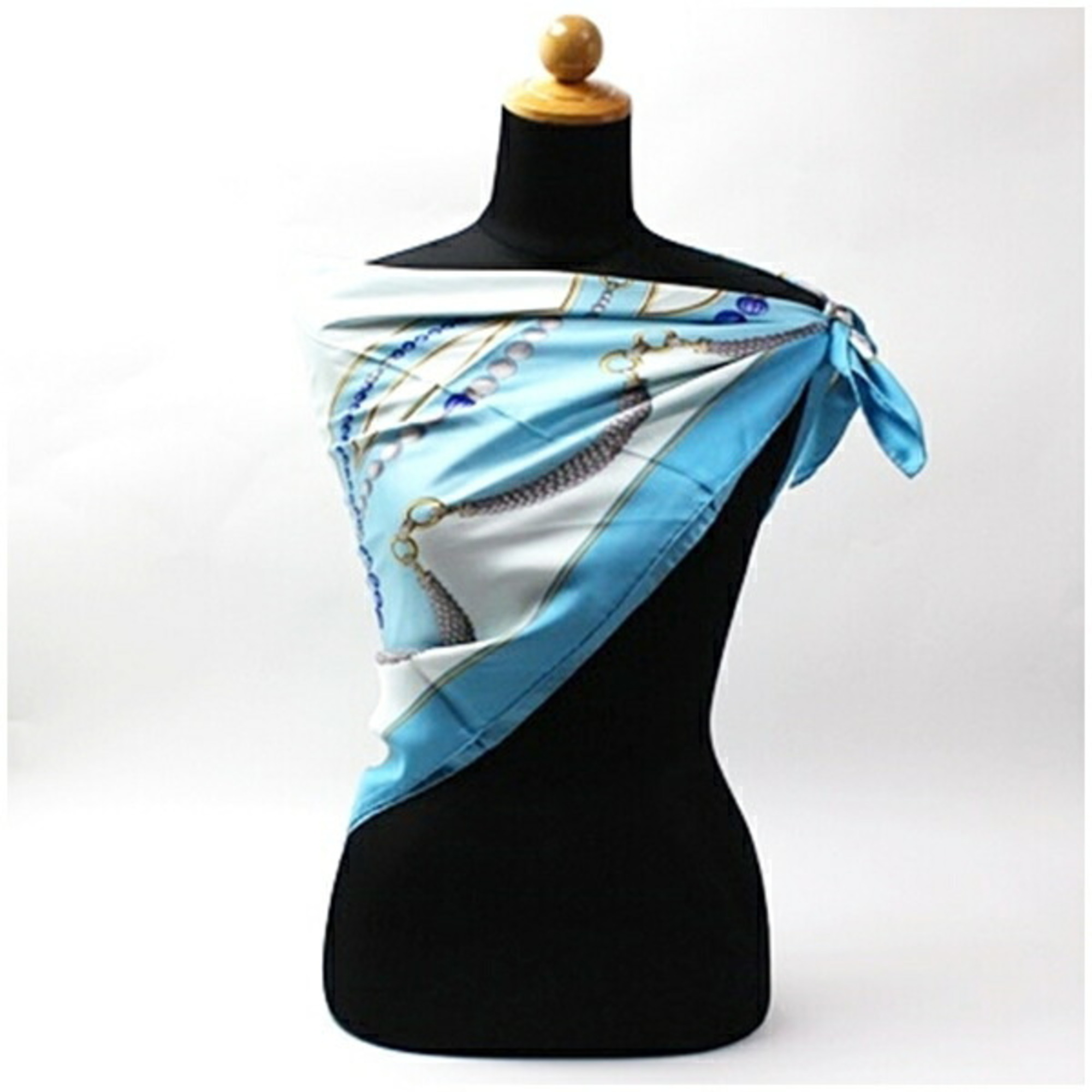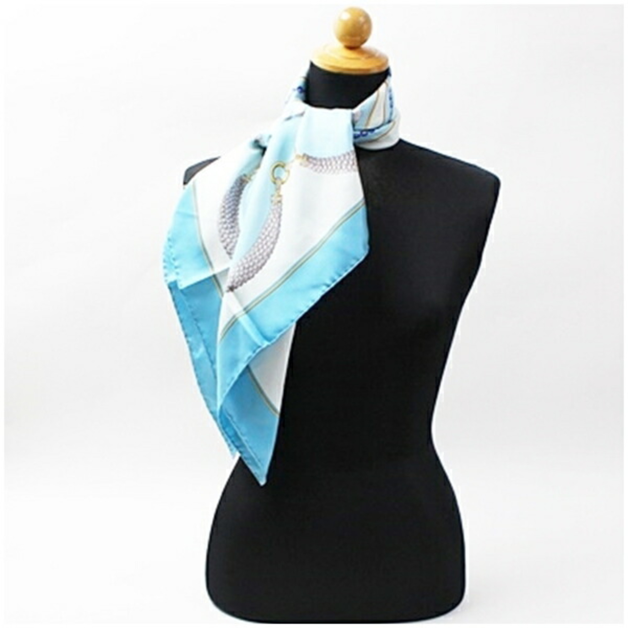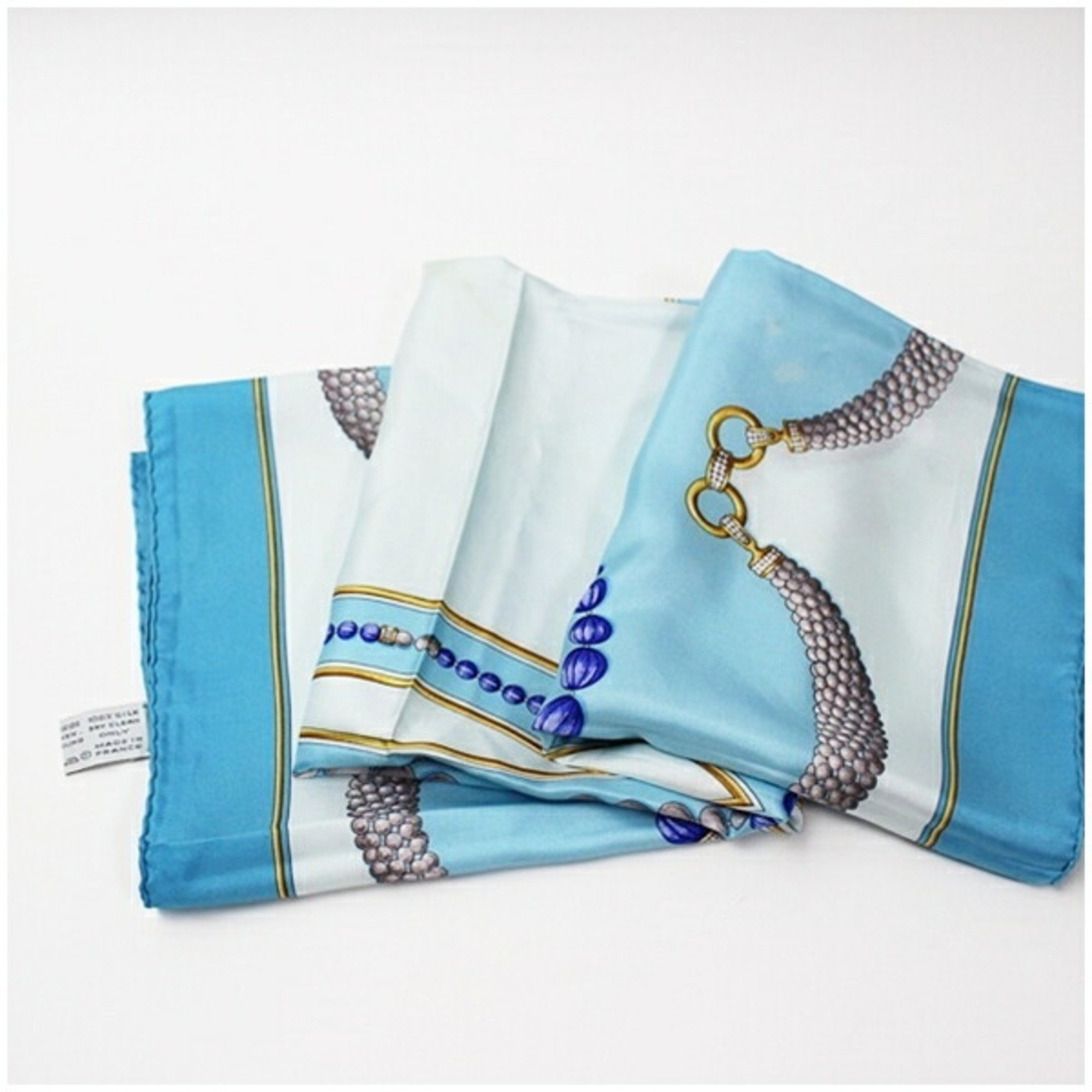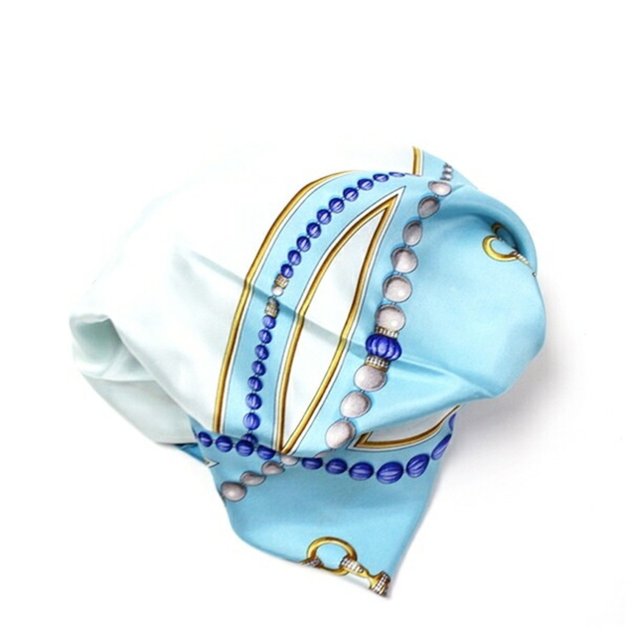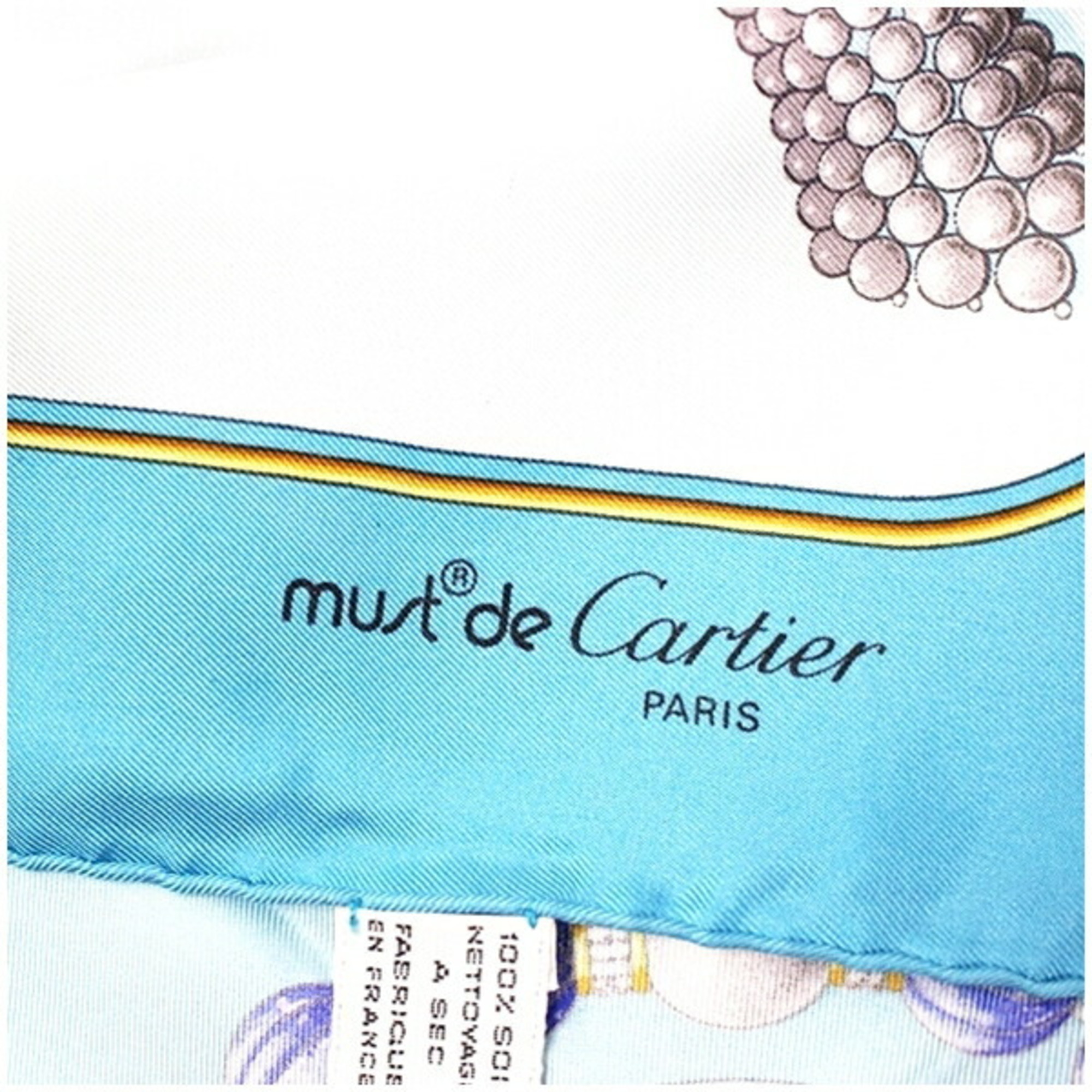 Cartier Must de silk scarf/muffler in light blue with a pattern for women