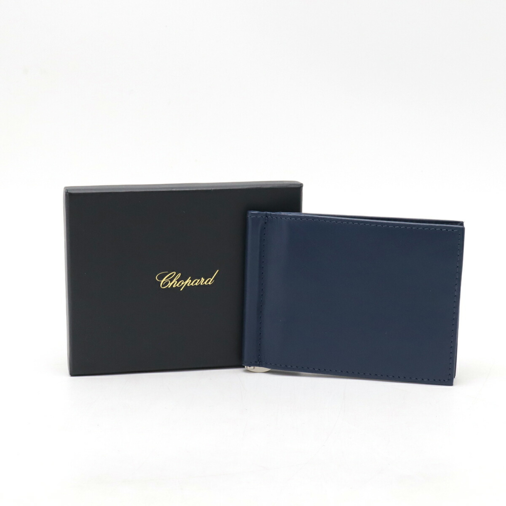 Chopard Bi-fold Wallet Money Clip Bill Card Case Business Holder Leather Navy
