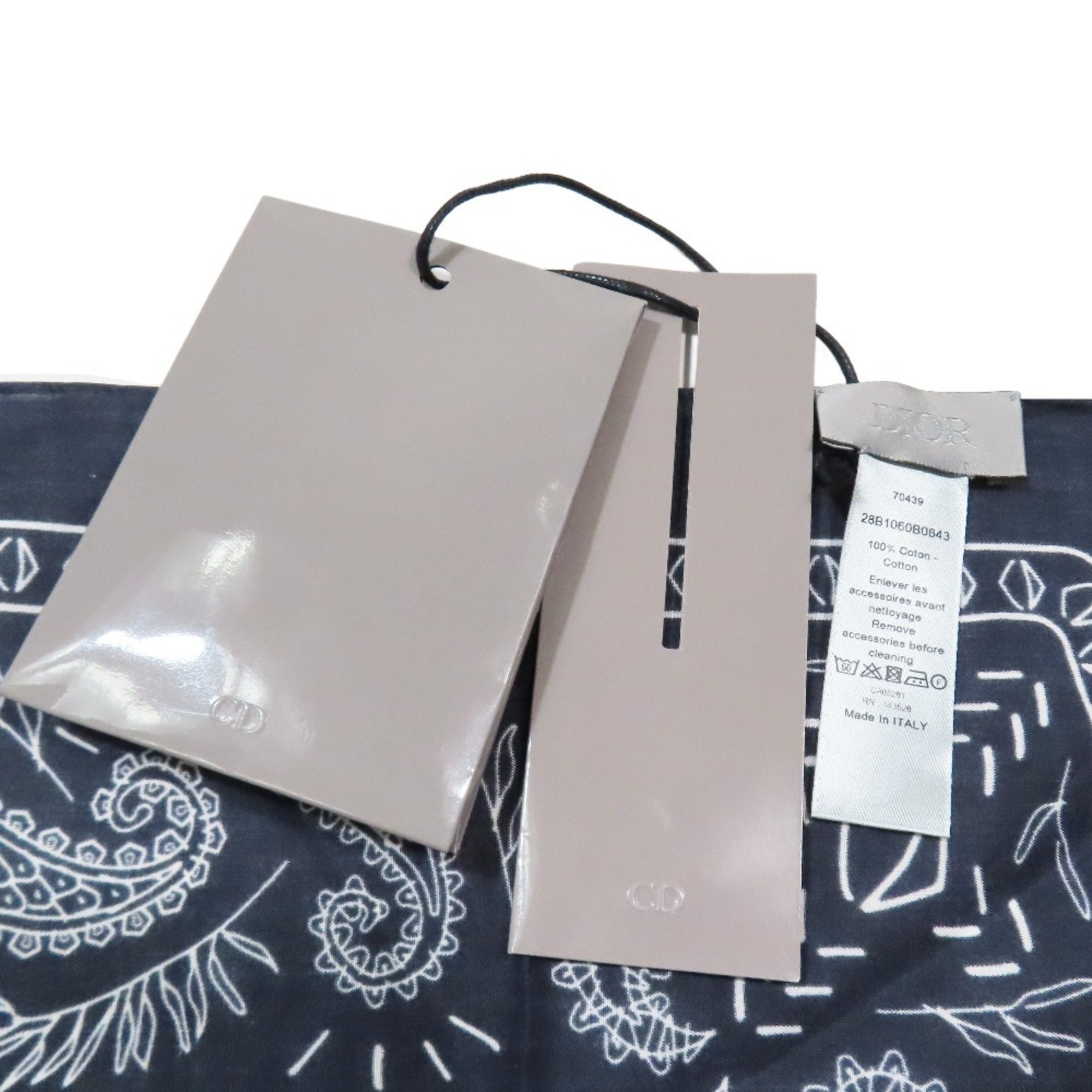 DIOR CD Diamond Scarf Bandana Logo Paisley Print with Ring, Navy Cotton, Men's and Women's