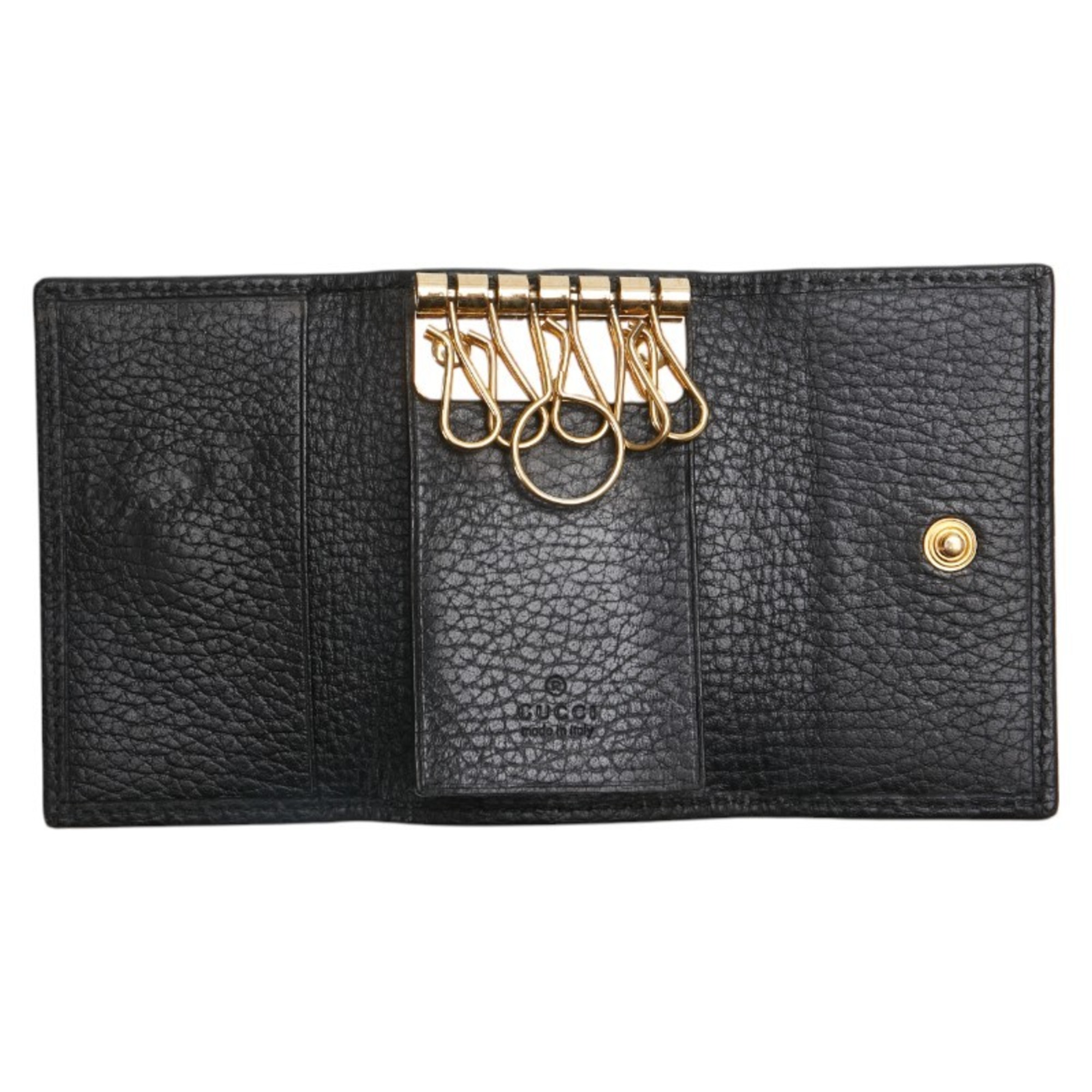 Gucci Petit Marmont Double G 6-Ring Key Case 456118 Black Leather Women's GUCCI