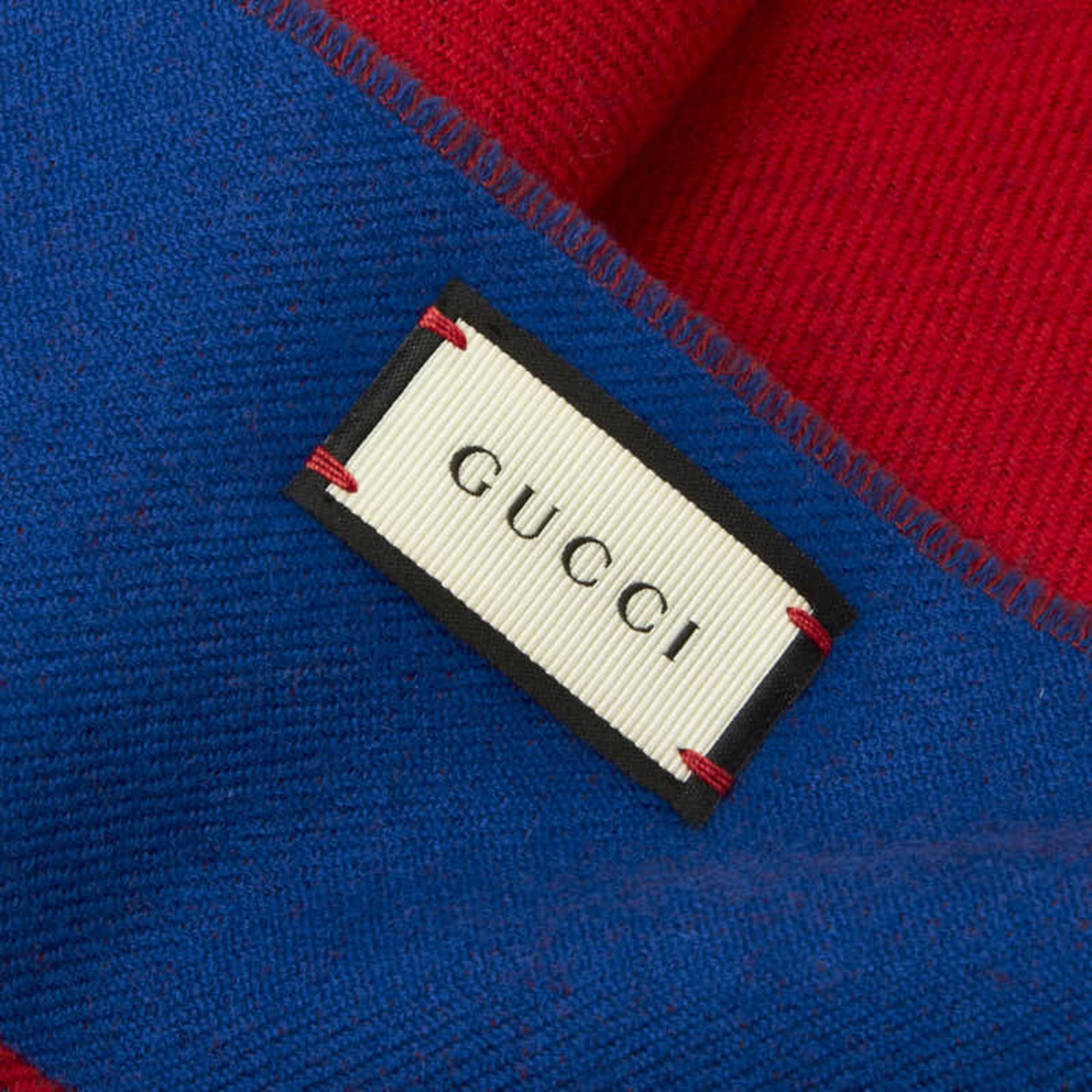 Gucci Tiger scarf in red and blue wool for women.