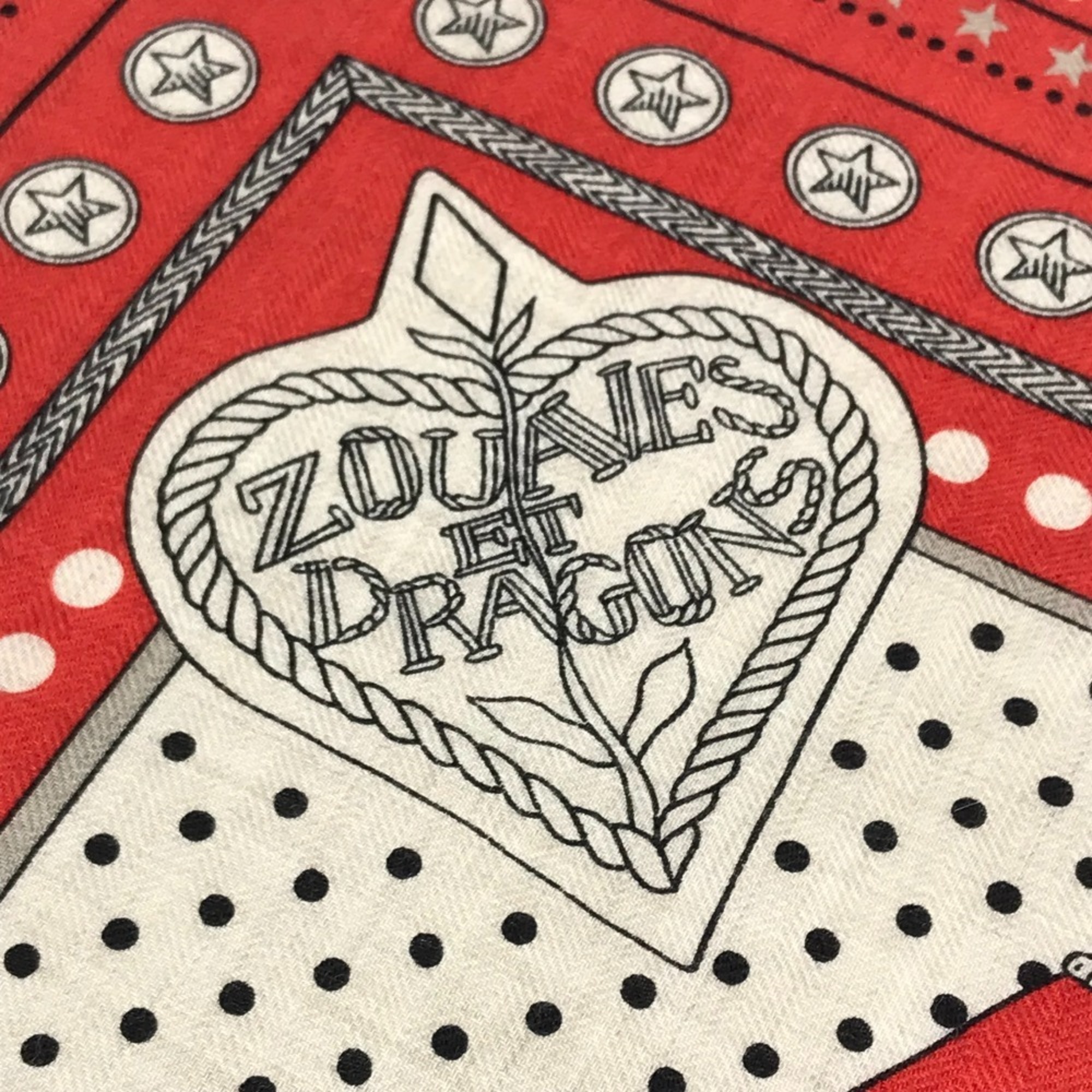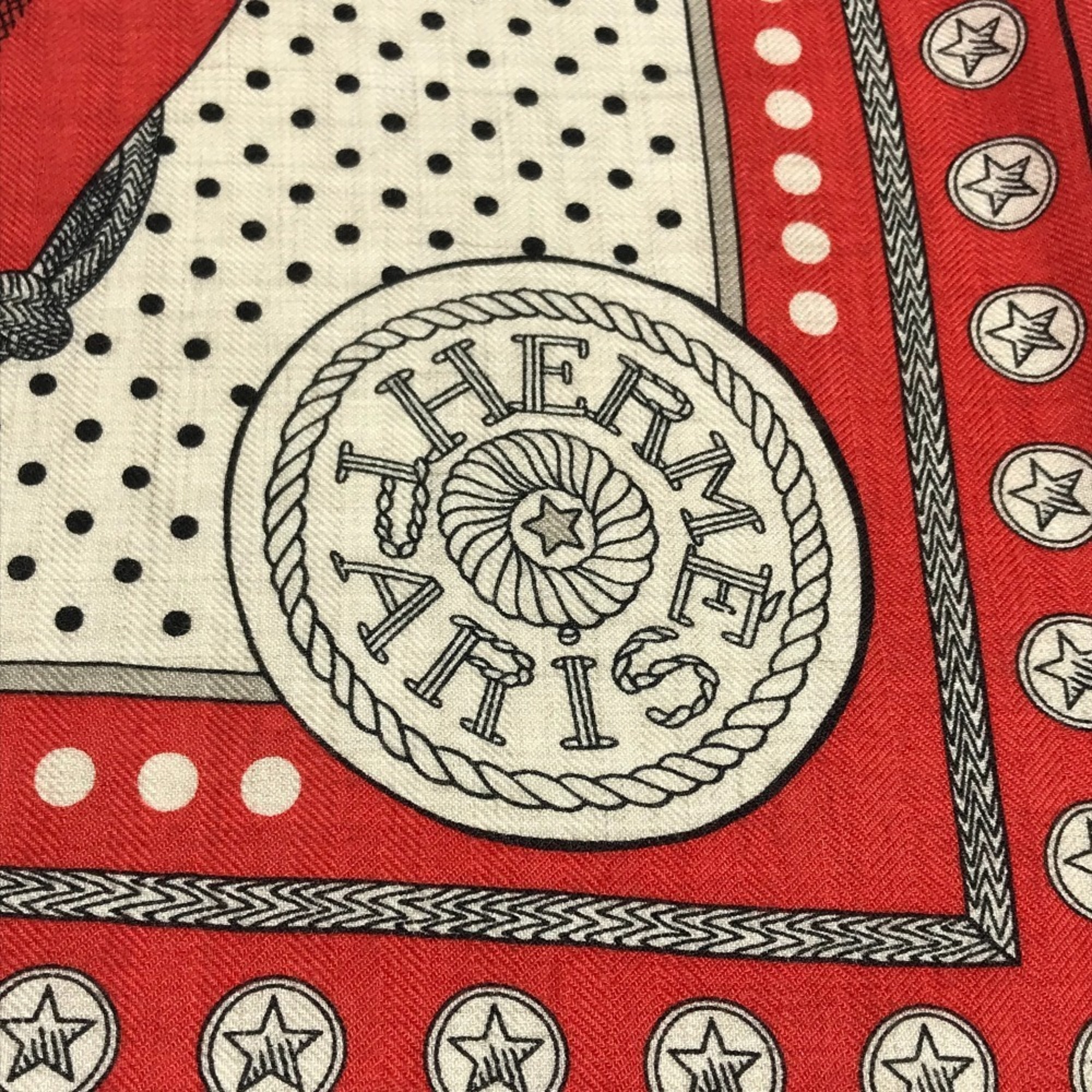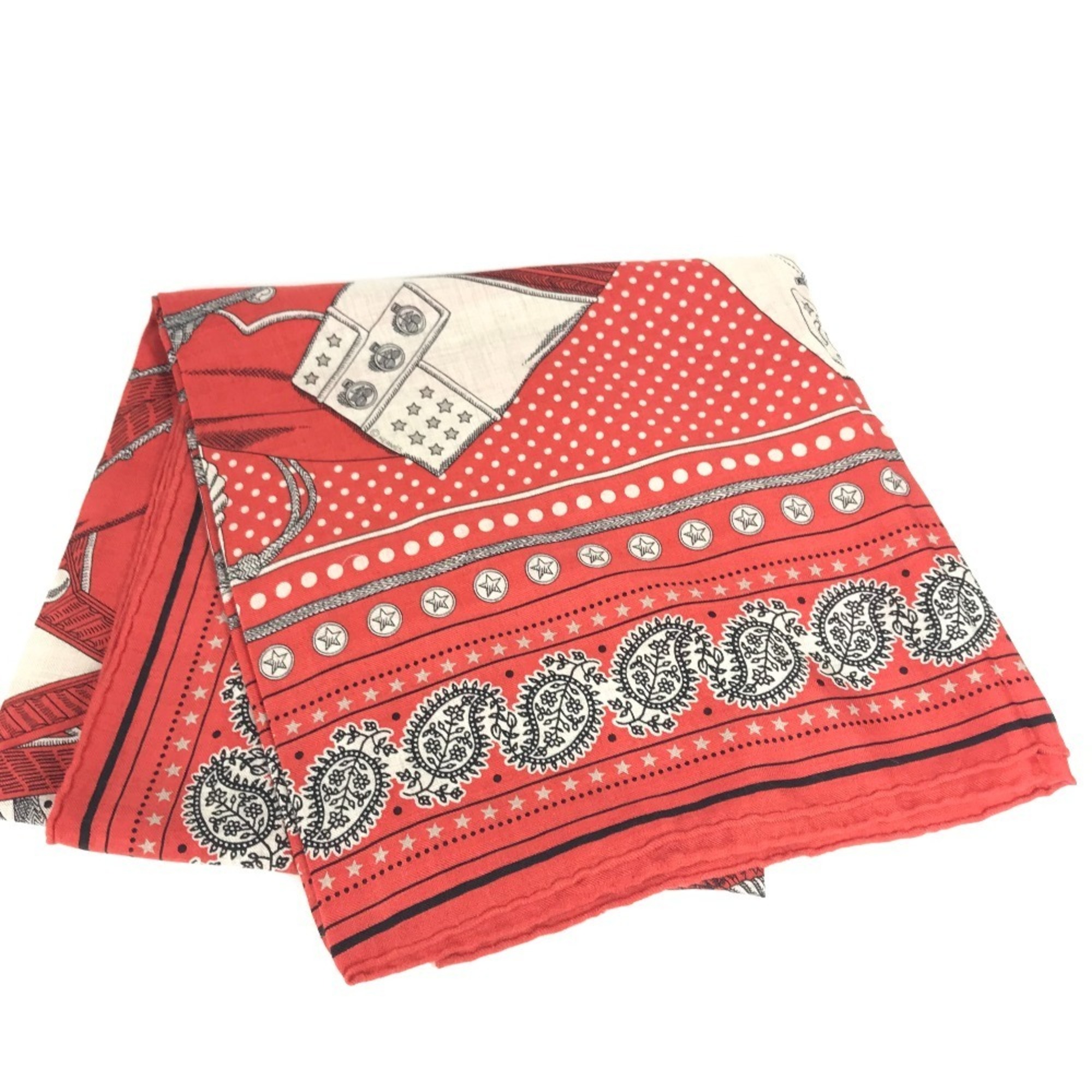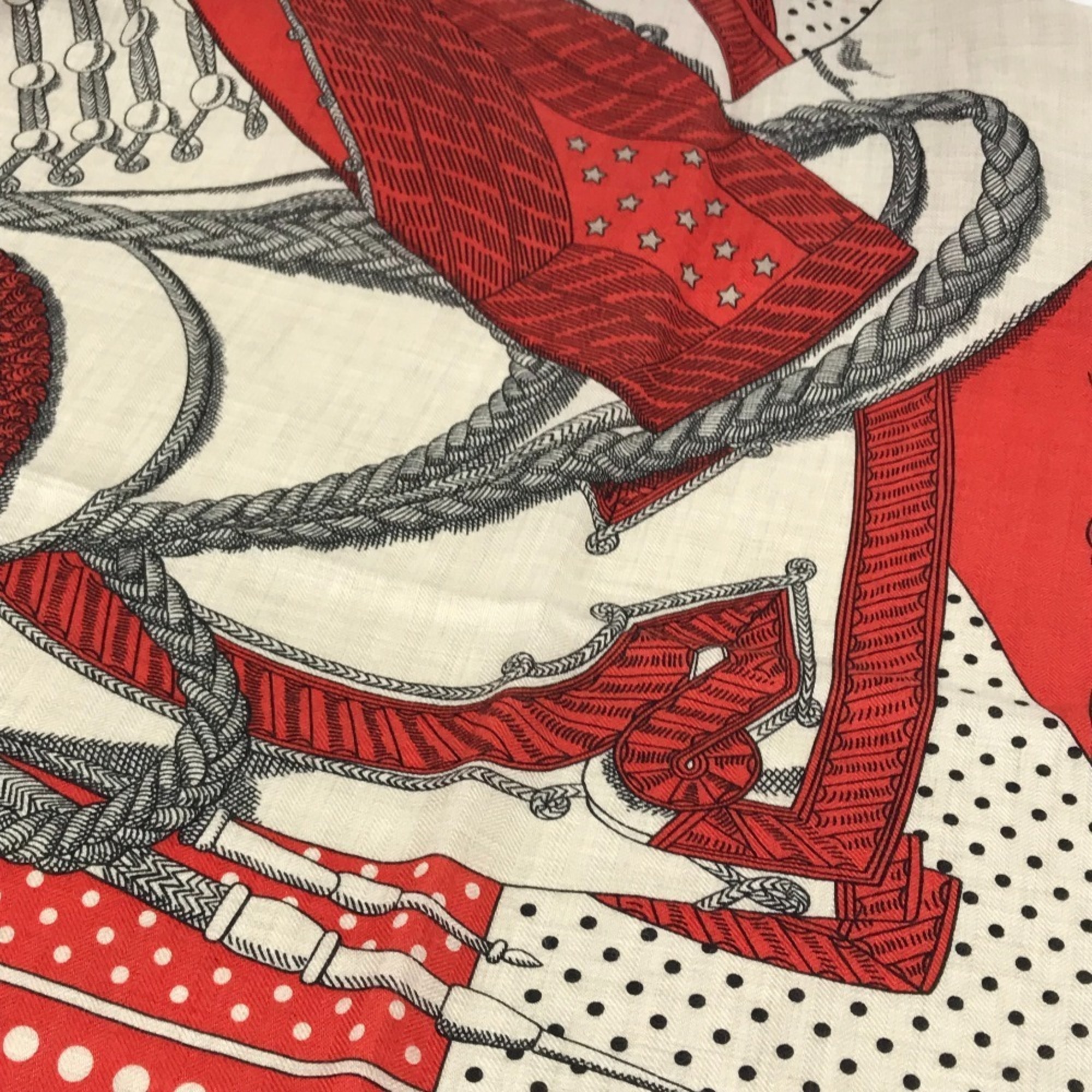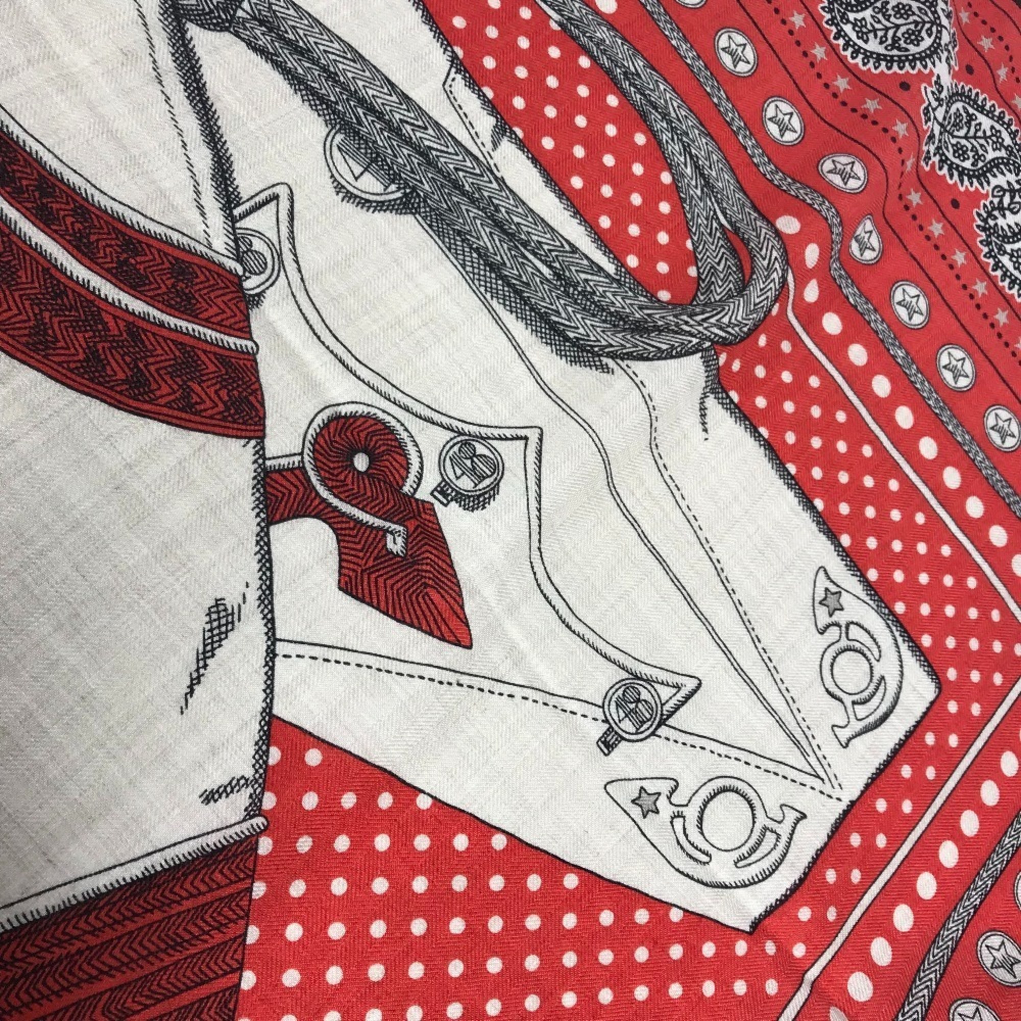 HERMES Zouaves et Dragons Carré Geans 140 Large Cashmere/Silk Shawl/Stole/Scarf/Muffler Women's Red Like New