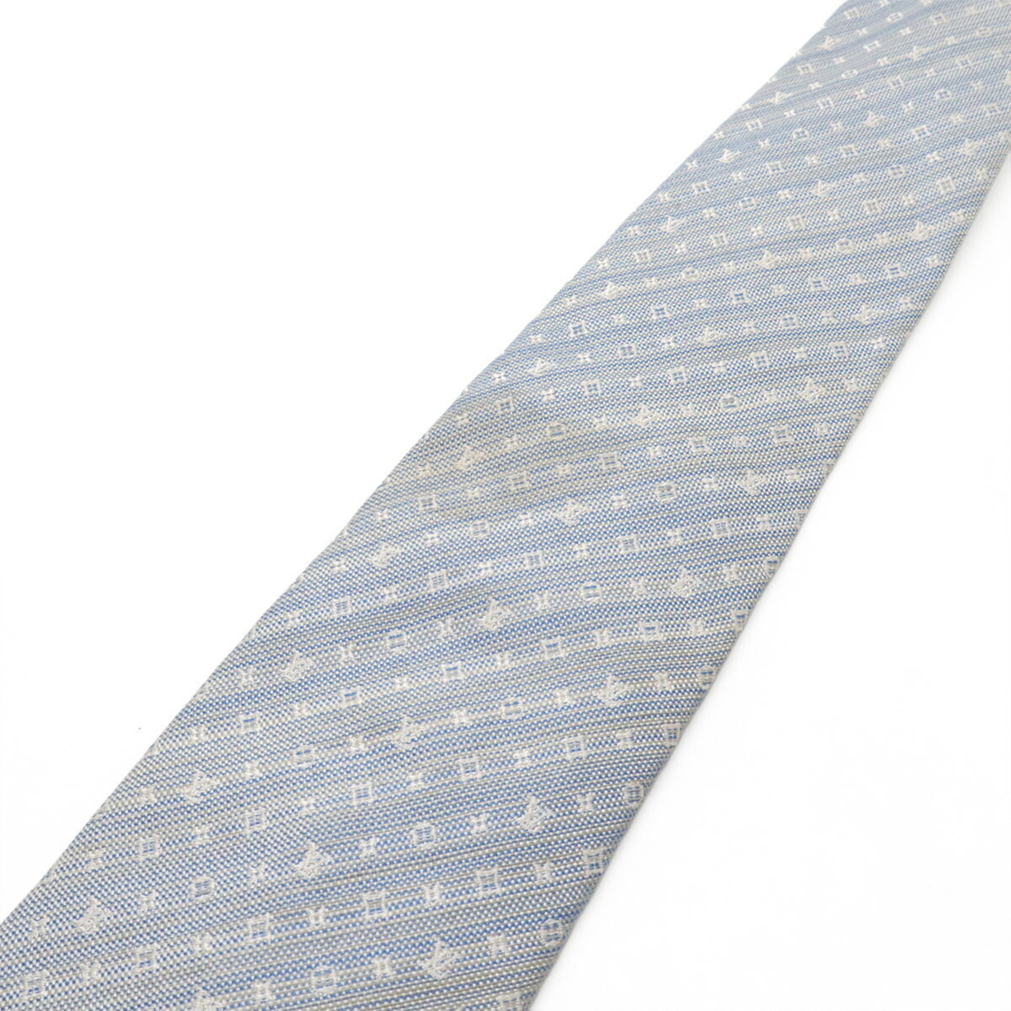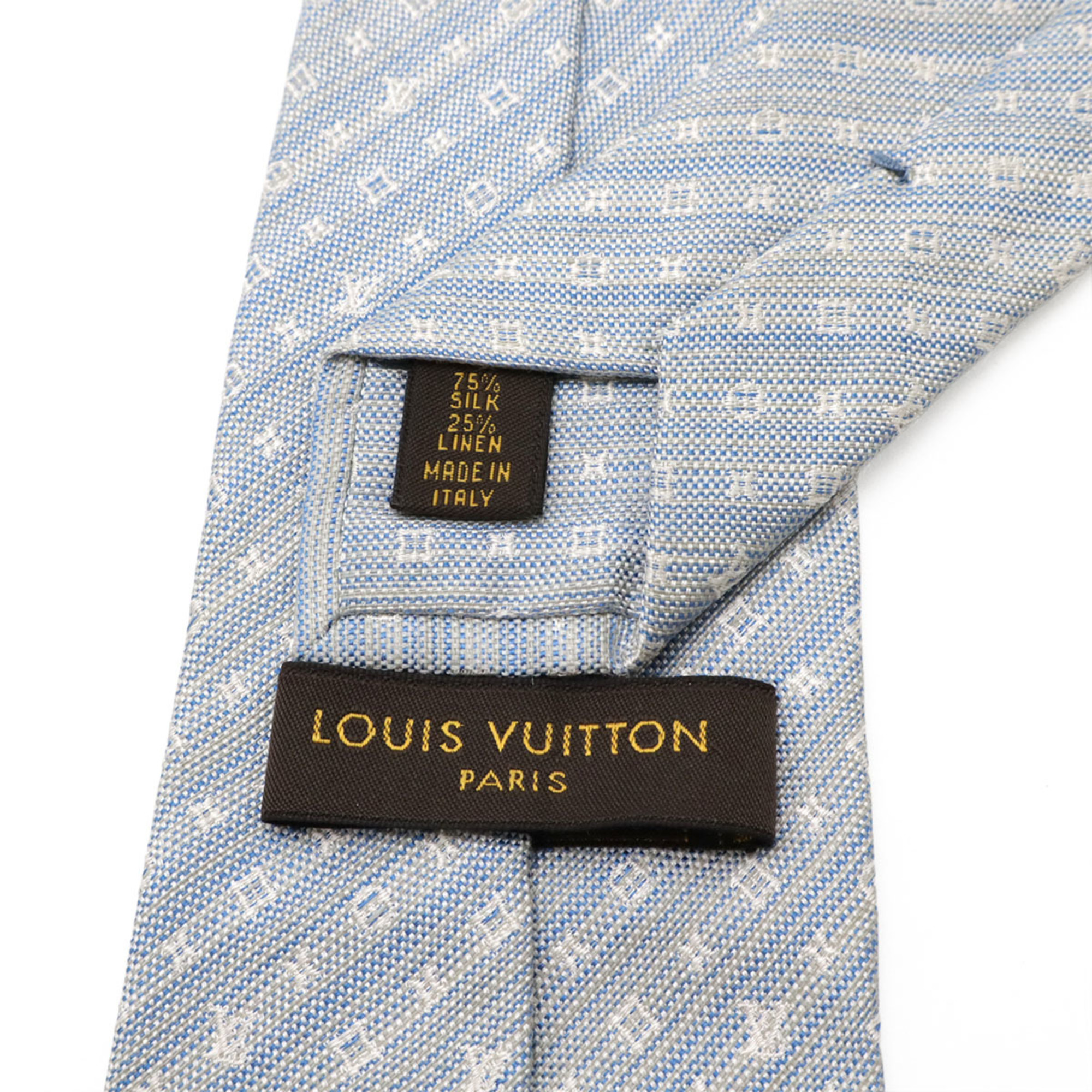 LOUIS VUITTON Monogram Striped Tie, 75% Silk, 25% Linen, Light Blue, M78570