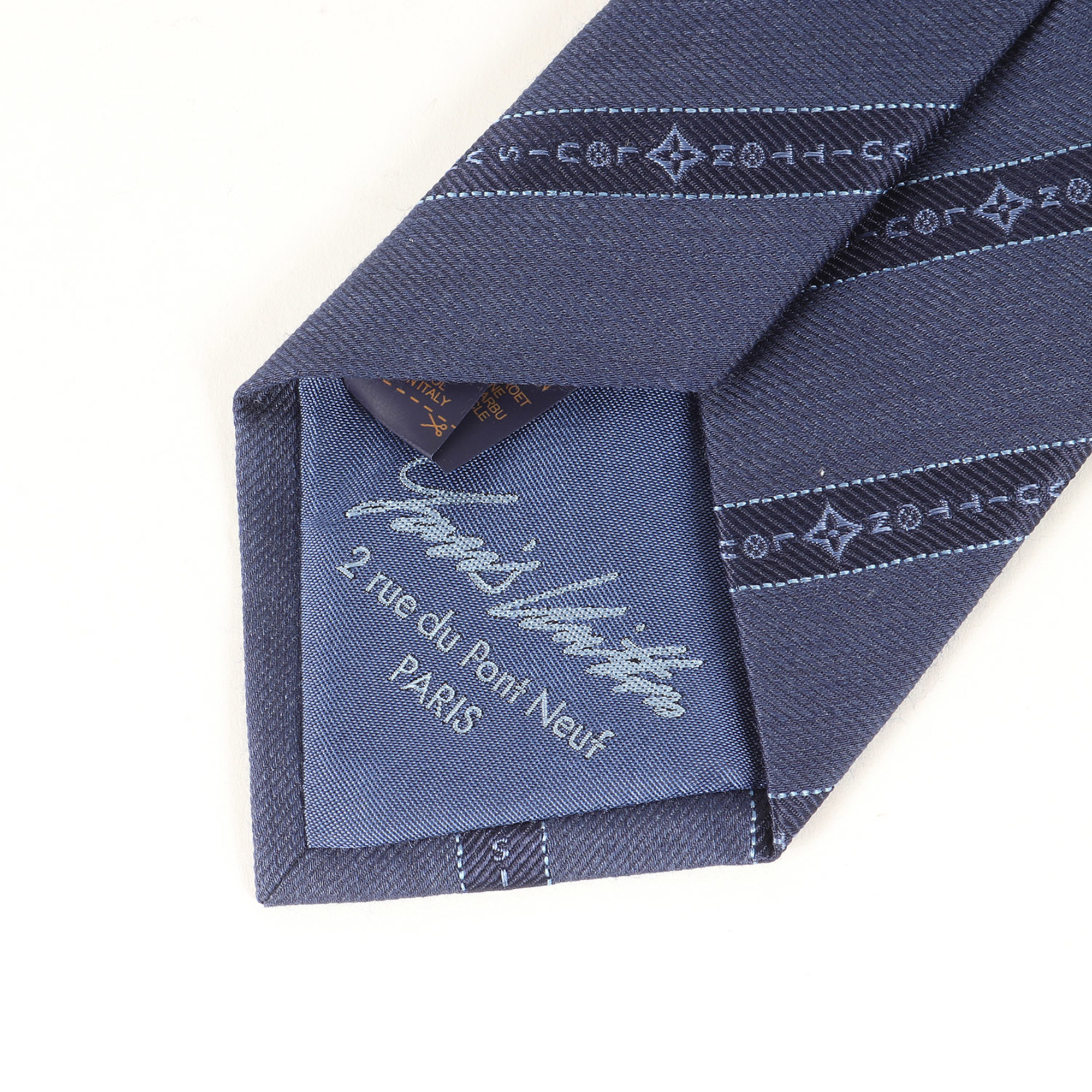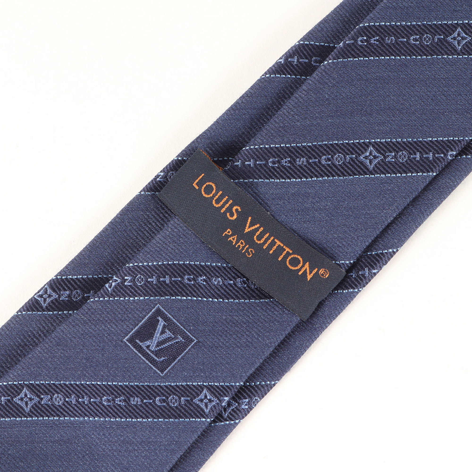 Home / Fashion / Woman / Accessories / LOUIS VUITTON Tie, Tangled Regimental Silk Cravate, M79088, Navy Blue, Men’s, Like New, K4618