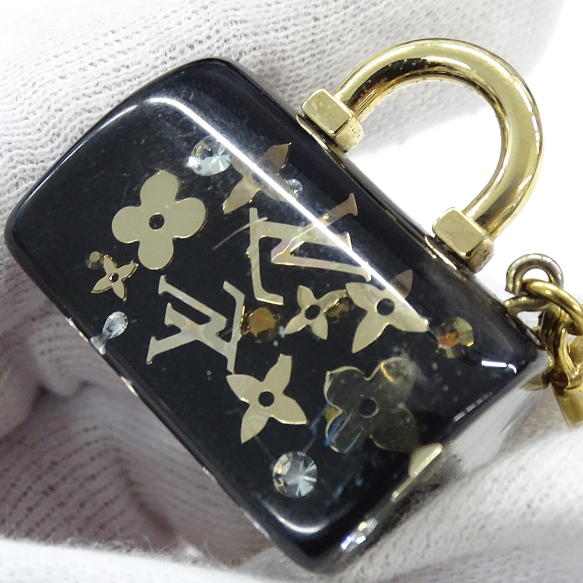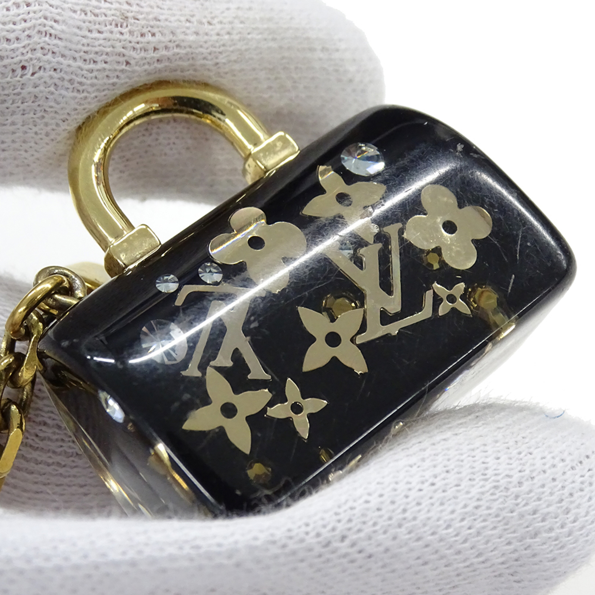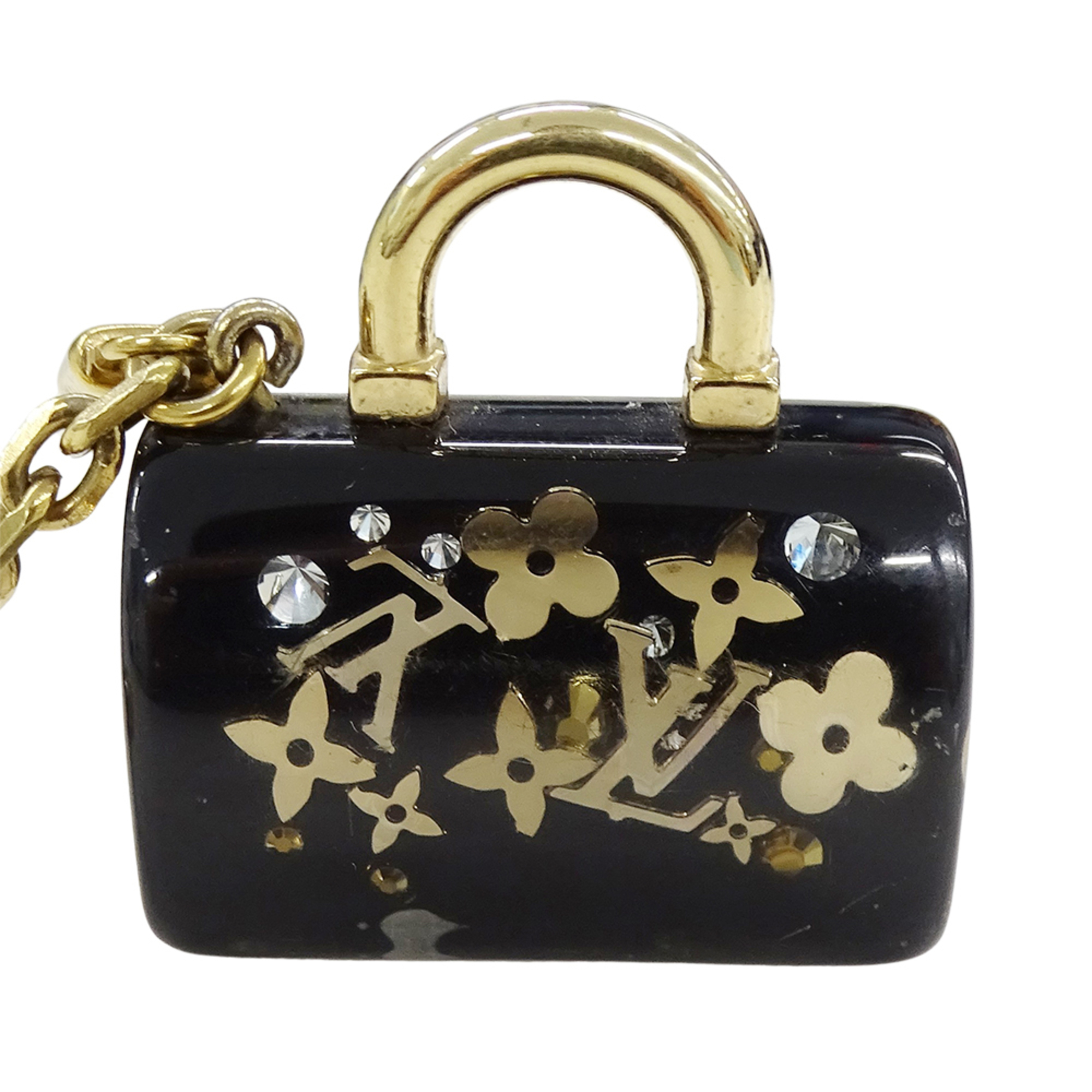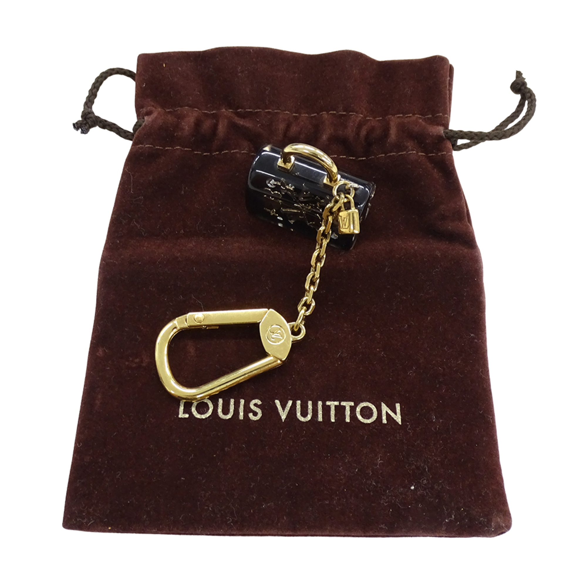 Louis Vuitton Women's Charm, Porte-Clés Speedy Inclusion Resin Keychain, Black with Gold Hardware, M65444