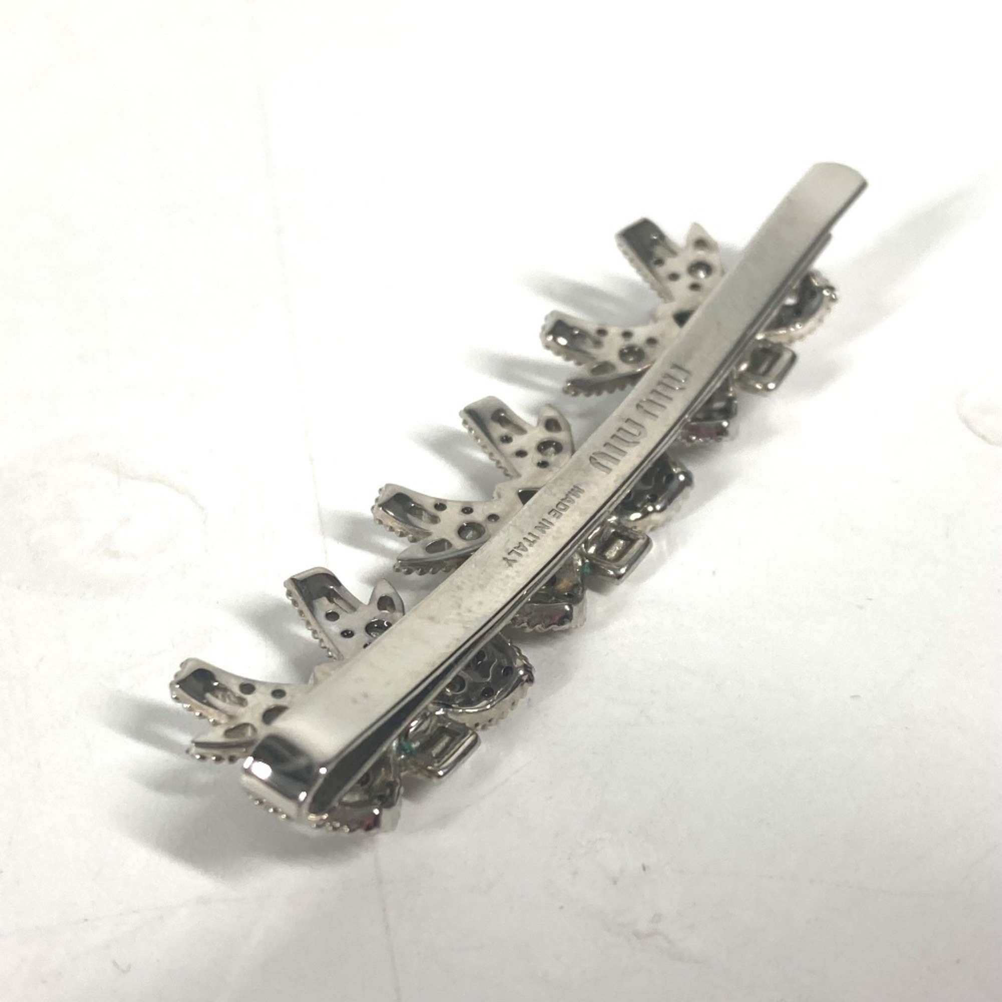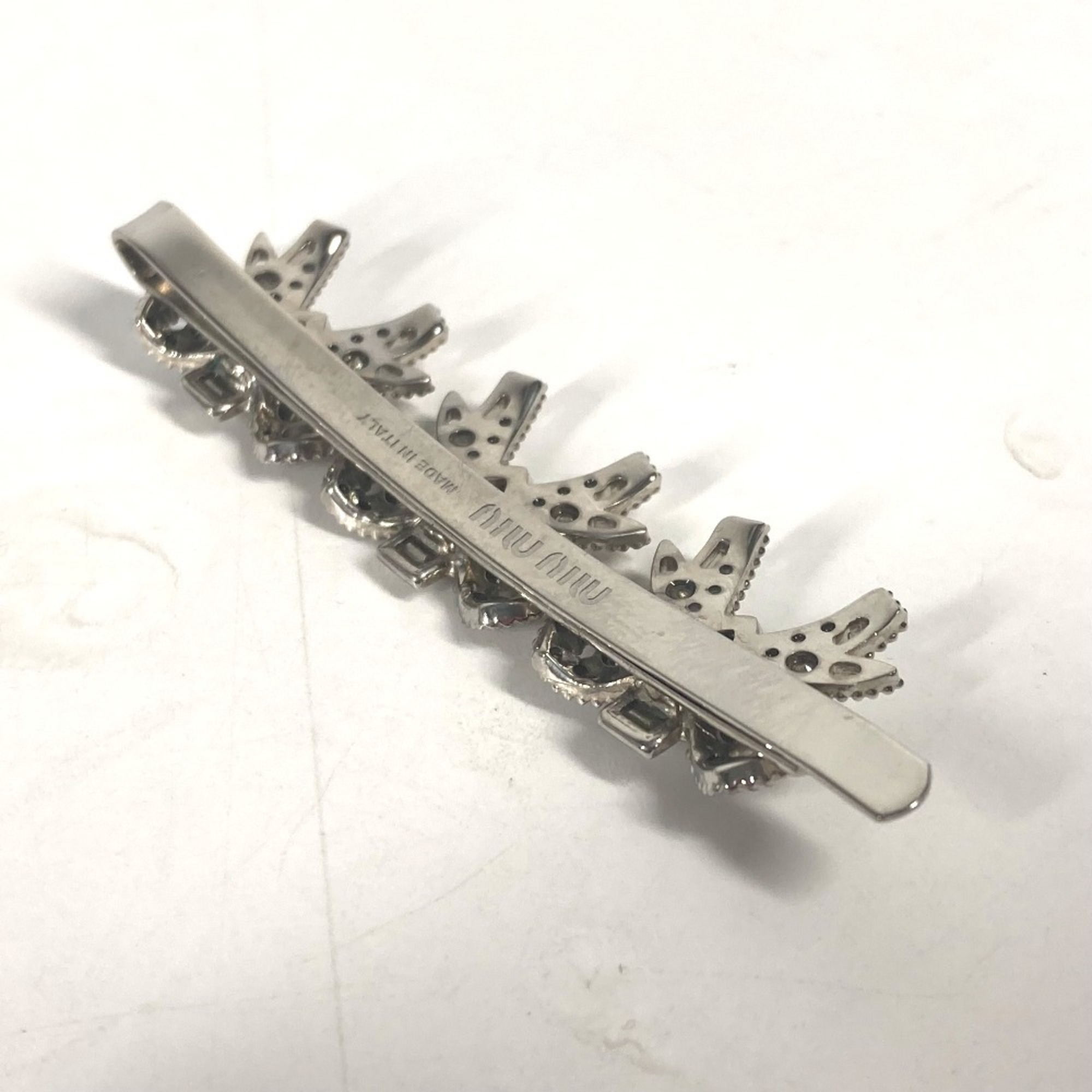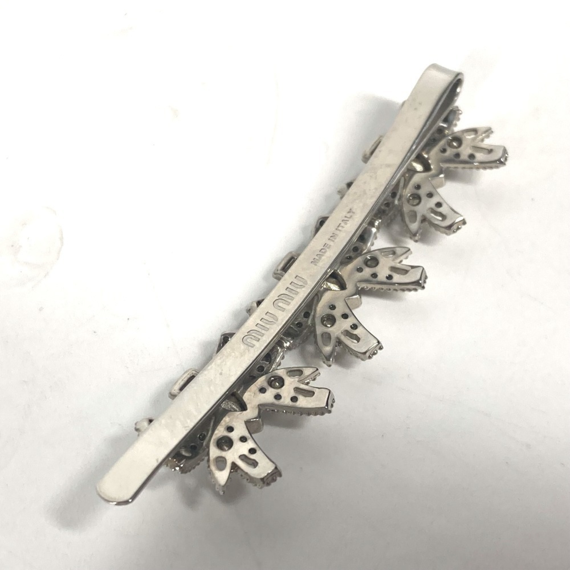 miu miu 5JF031 Ribbon Rhinestone Hair Barrette Hairpin Metal Women's Silver