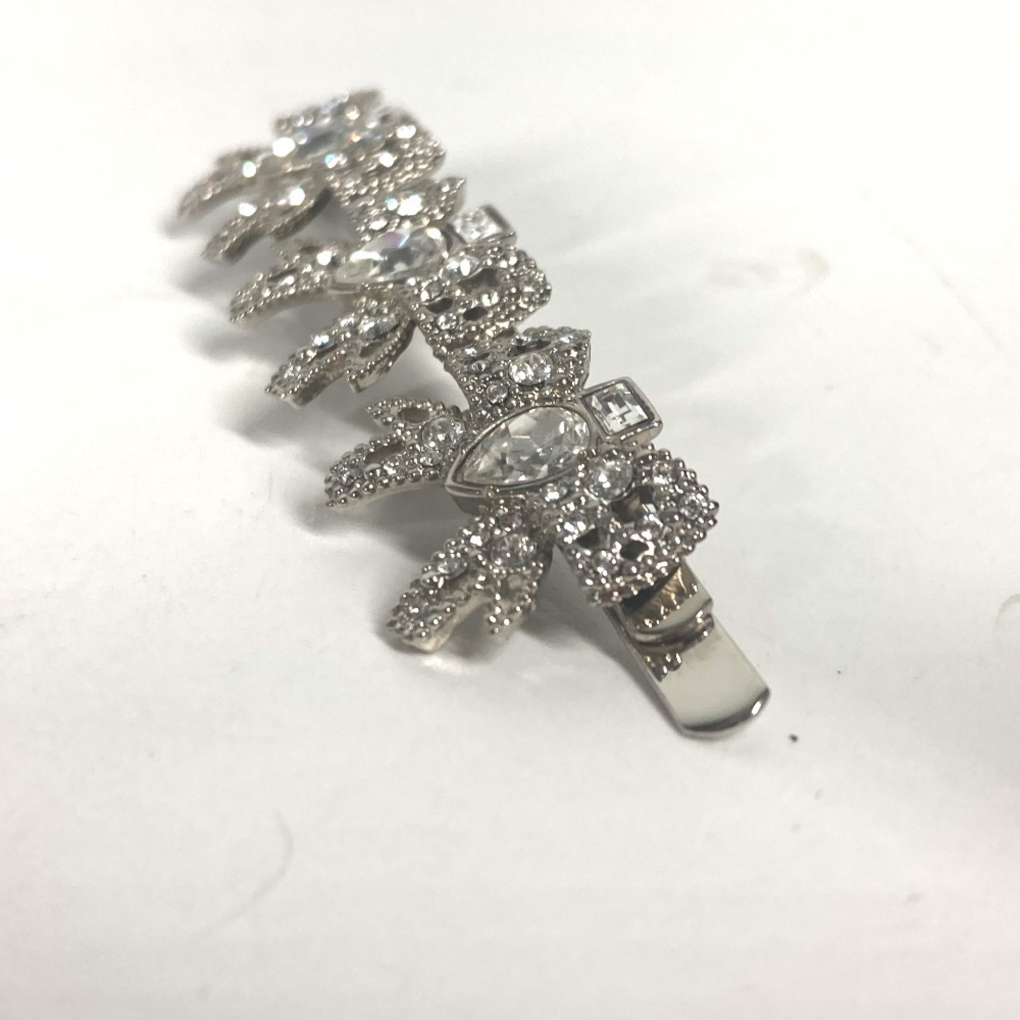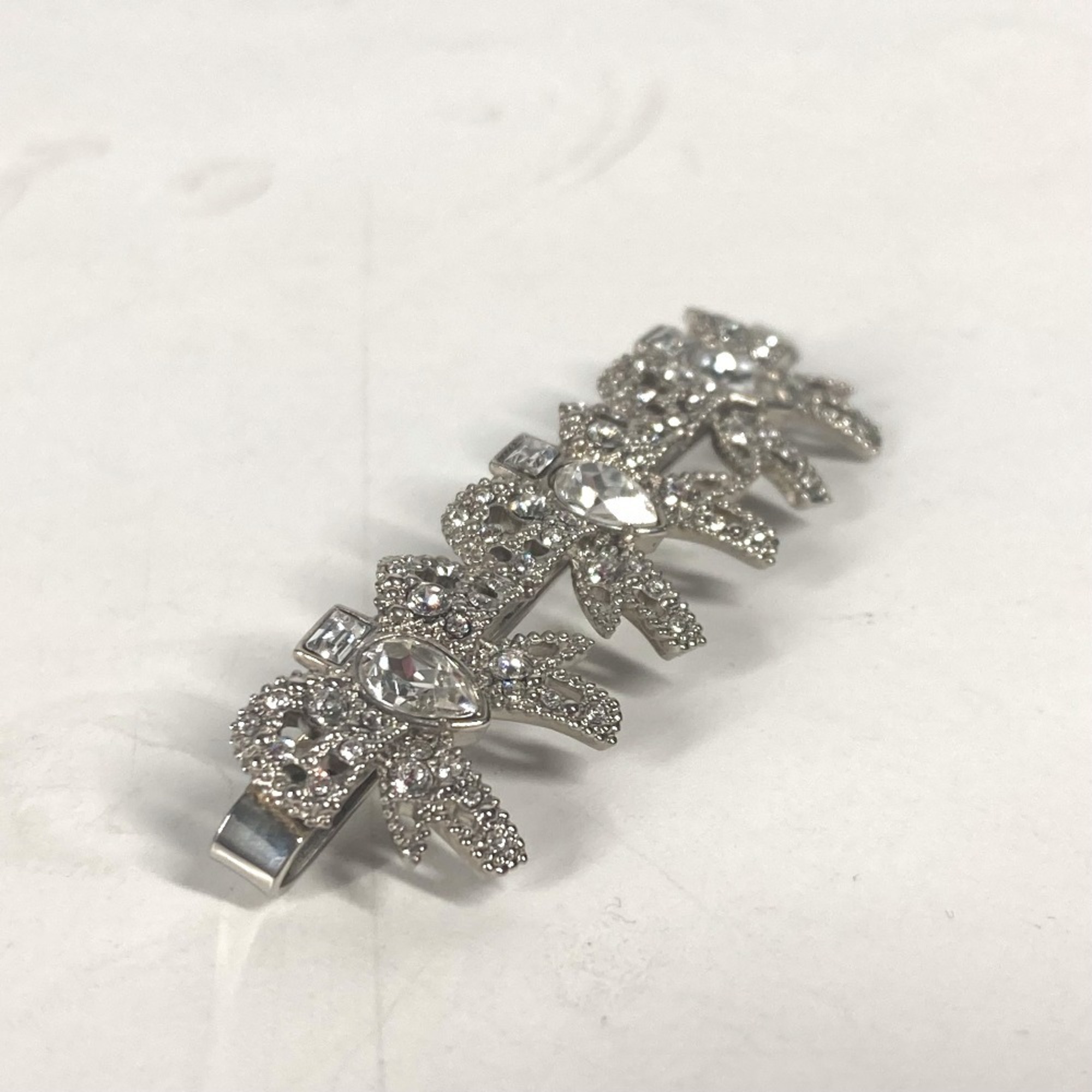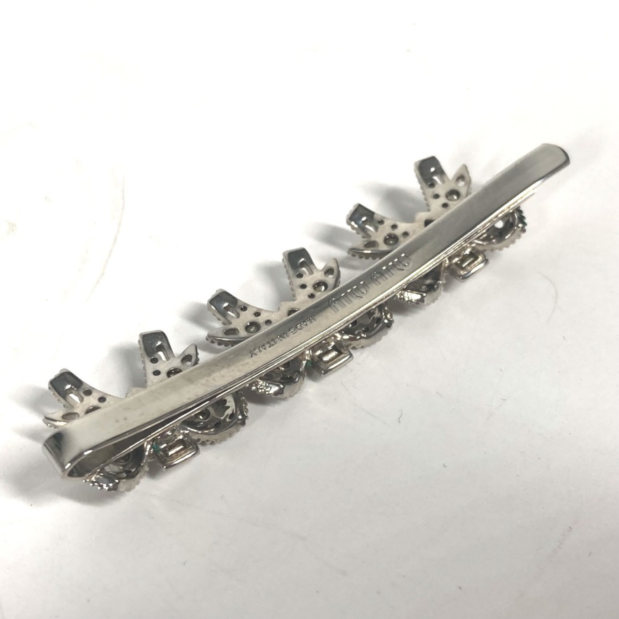 miu miu 5JF031 Ribbon Rhinestone Hair Barrette Hairpin Metal Women's Silver
