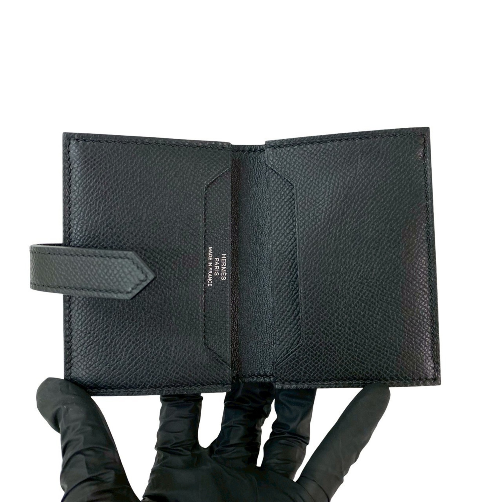 Unused, stored item with W markings. HERMES Bearn card case, monochrome, Epsom leather, business holder, pass black, 20412.