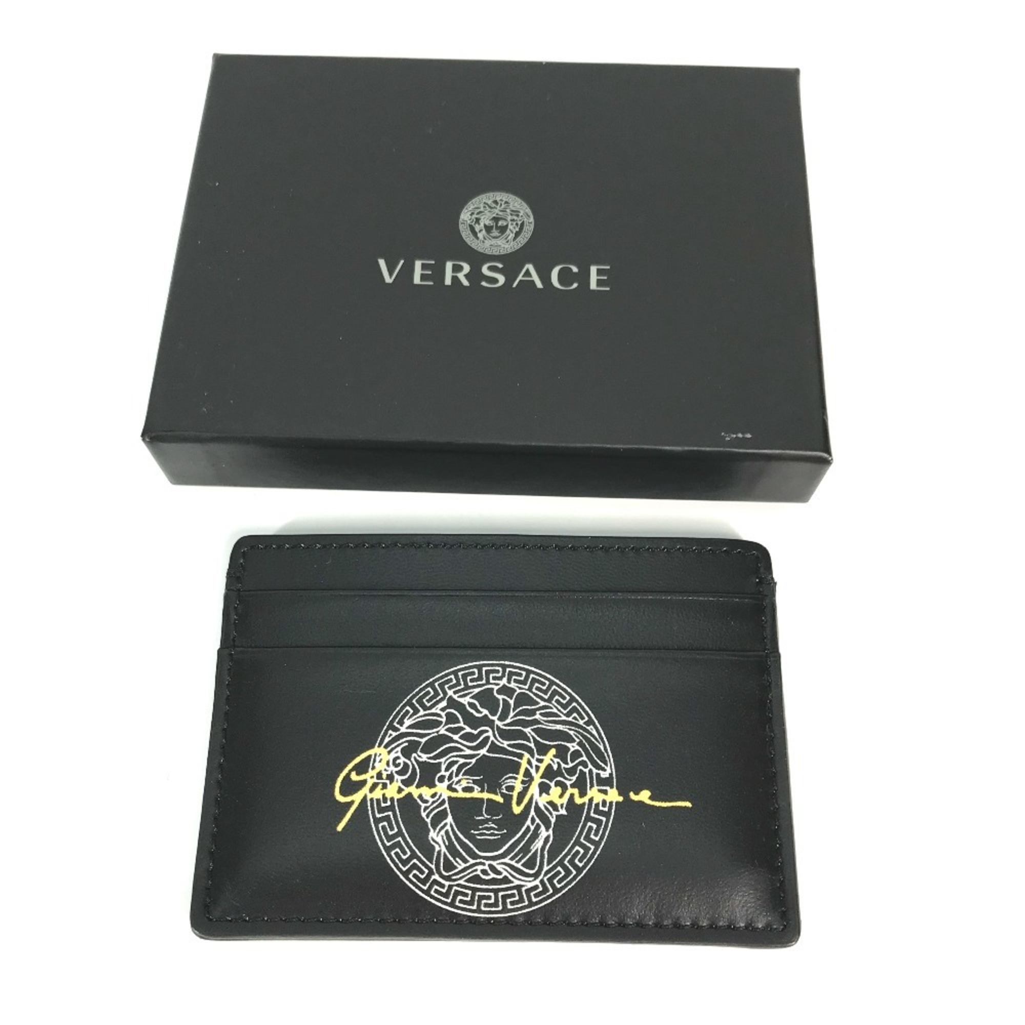 VERSACE Medusa Business Card Holder, Pass Case, Leather, Men's, Black